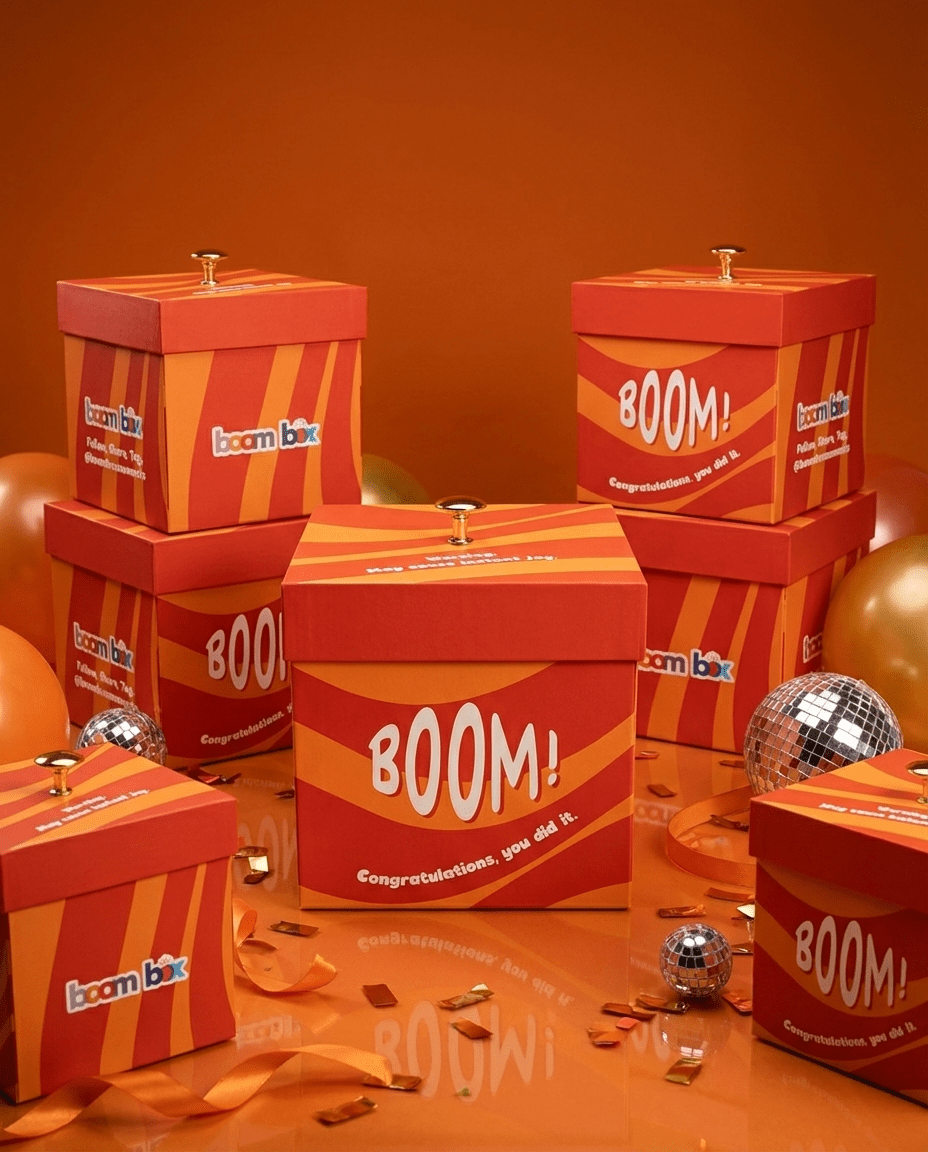 Each BoomBox is crafted for that instant “wow” — opening into layers of surprise and a delicious cake from our trusted pastry partners. After all, it’s not just what’s inside. It’s the moment that makes it unforgettable.